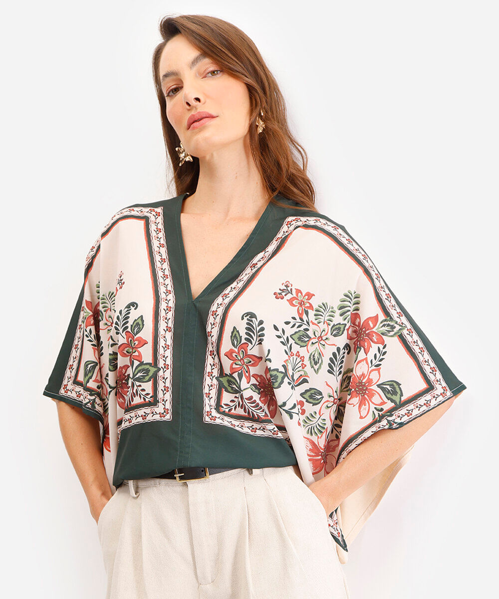 bata decote v floral verde