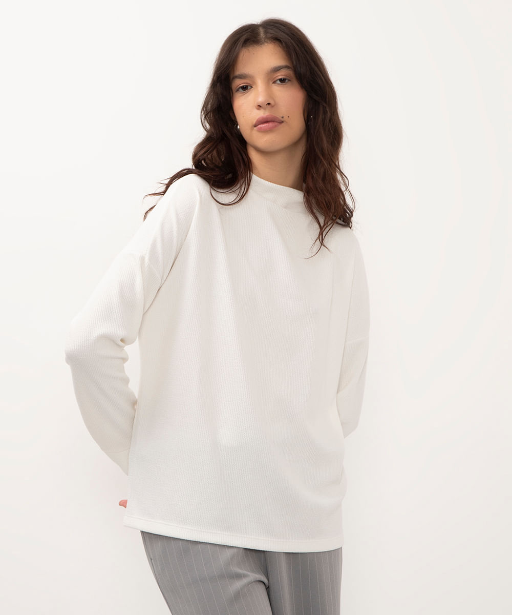 Blusa Tricô Modal Feminina Manga Longa Gola Alta Texturizada