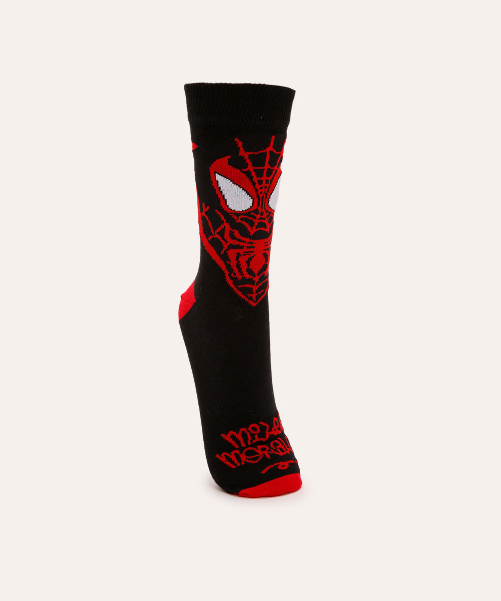 meia cano alto divertida homem aranha preta