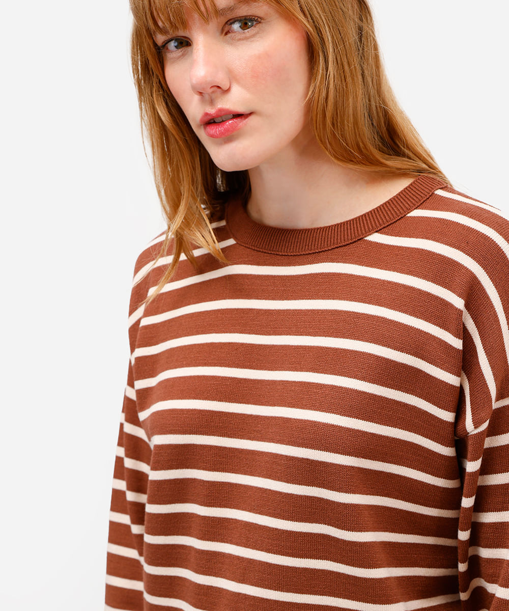 suéter comfort de tricot listrado marrom