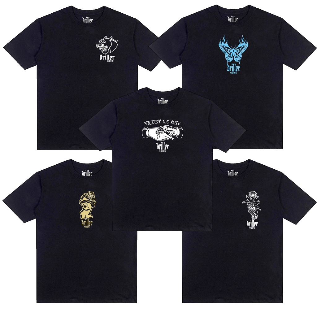 Kit 5 Camisetas Drop 2 Driller Supply pacote básico de camiseta algodão Streetwear Camiseta Minimalista Anjo Ak Skull Borboleta Flame Trust