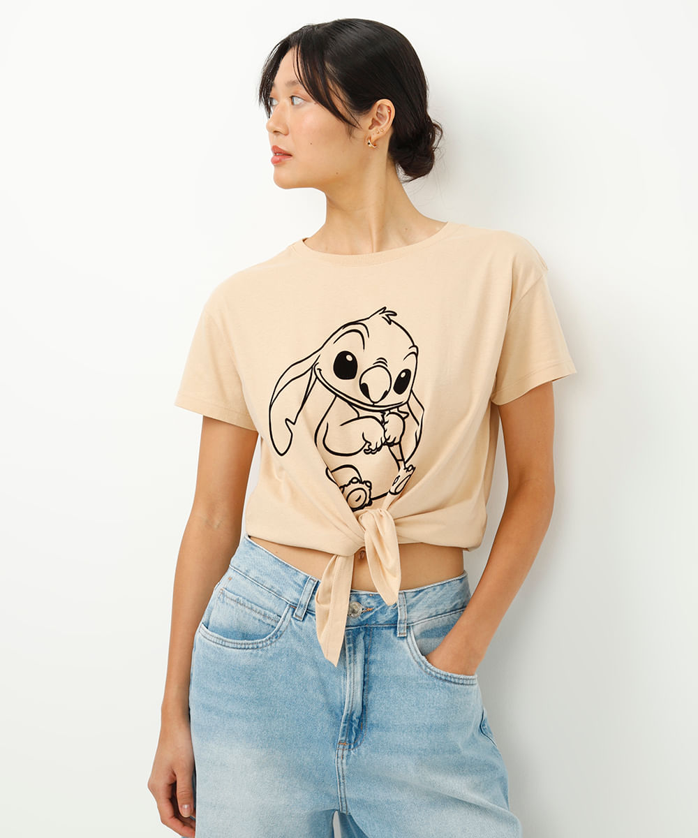 camiseta de algodão Minnie manga curta com nó rosa claro