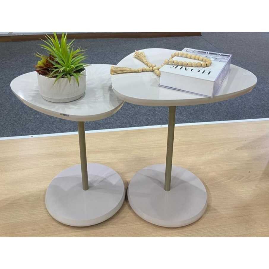 Conjunto Kit Com Duas Mesas De Apoio Lateral Alta e Baixa Bel Cor Off White - Artely