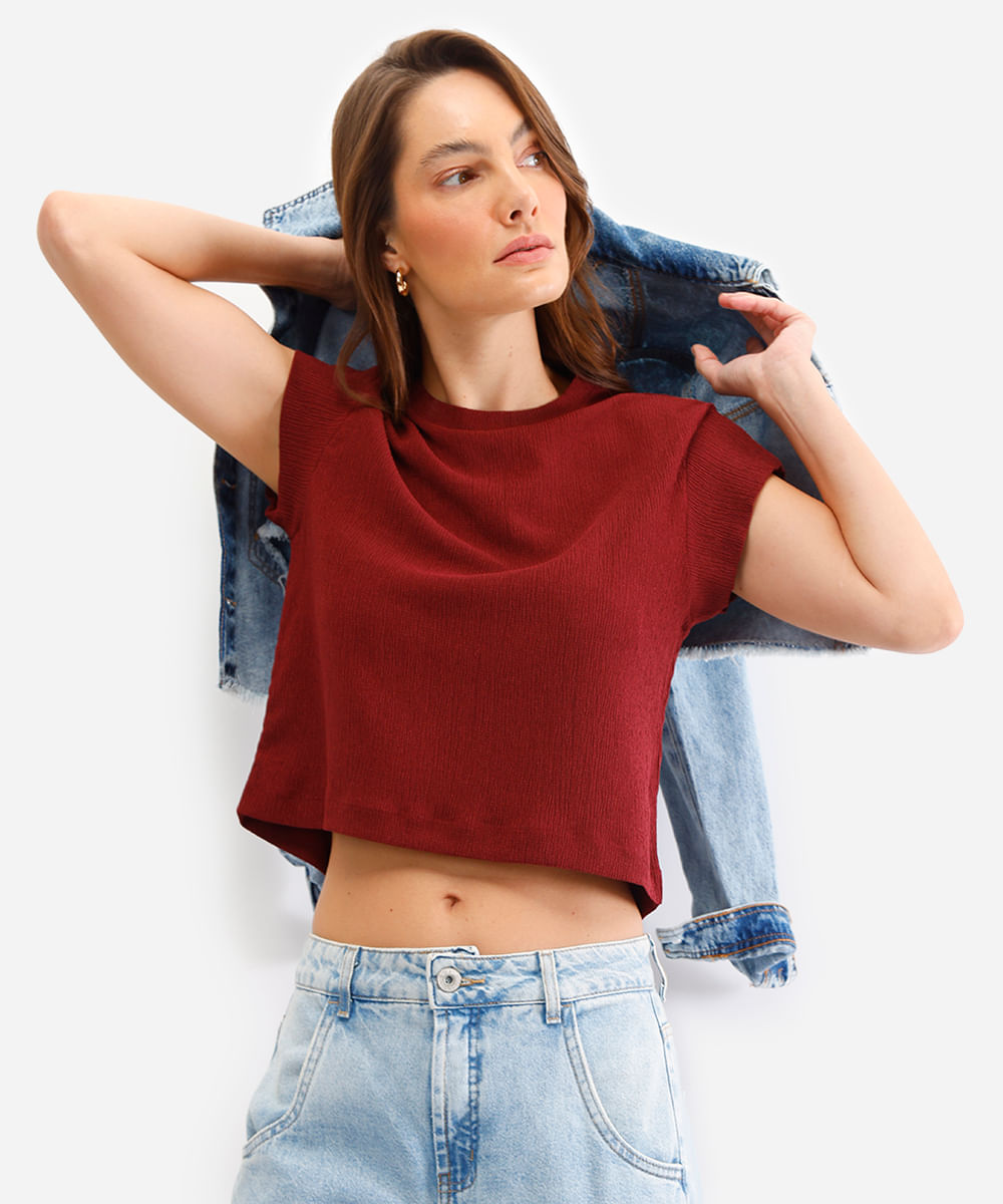 Lunender - Blusa Muscle Tee em Malha Texturizada Laranja