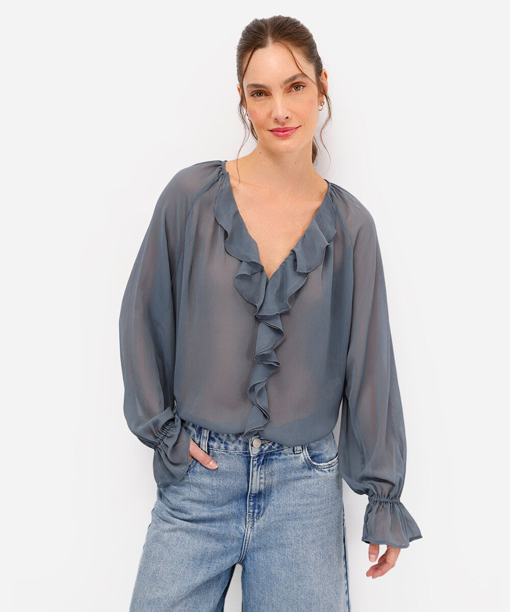 Bata Feminina manga longa Chamise Tecido linho Com Botões Moda Feminina Elegante