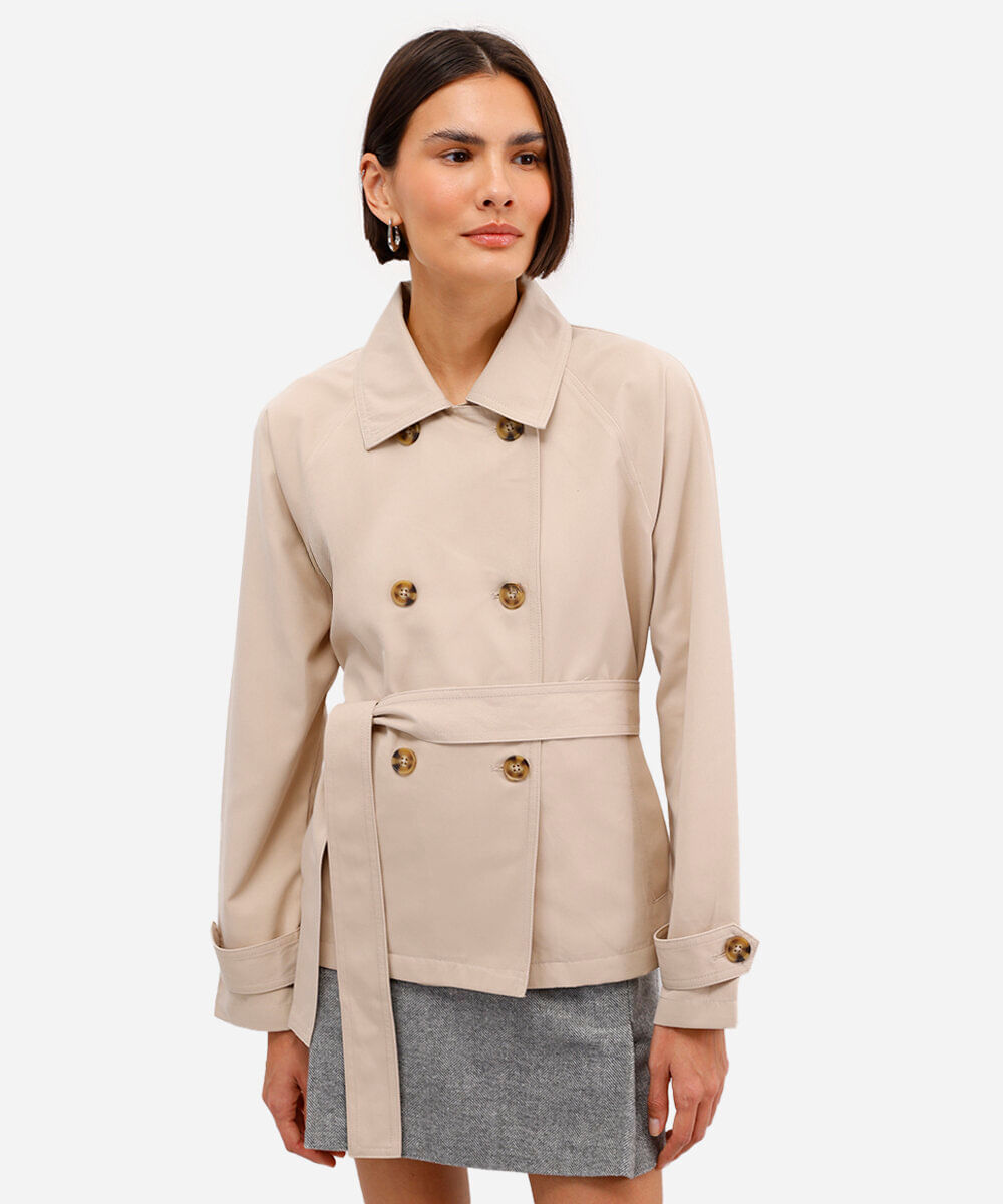 Casaco Pop Me Trench Coat Alongado Com Faixa E Botões Bege