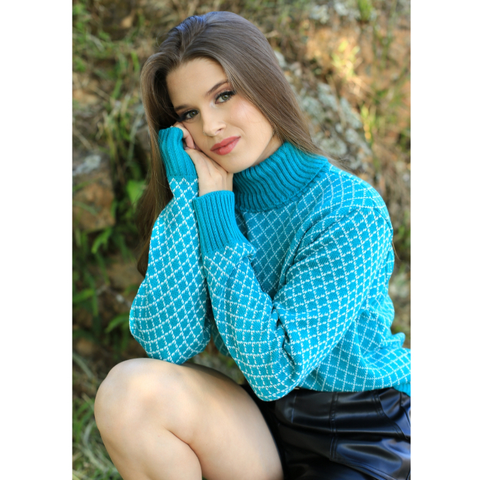 Blusa Pink Tricot Losangos e Gola Alta De Tricô Peça Pronta Feminina