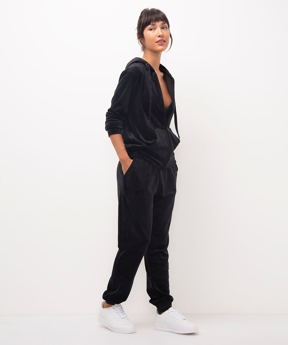 calça reta de plush cintura alta esportiva ace - preto