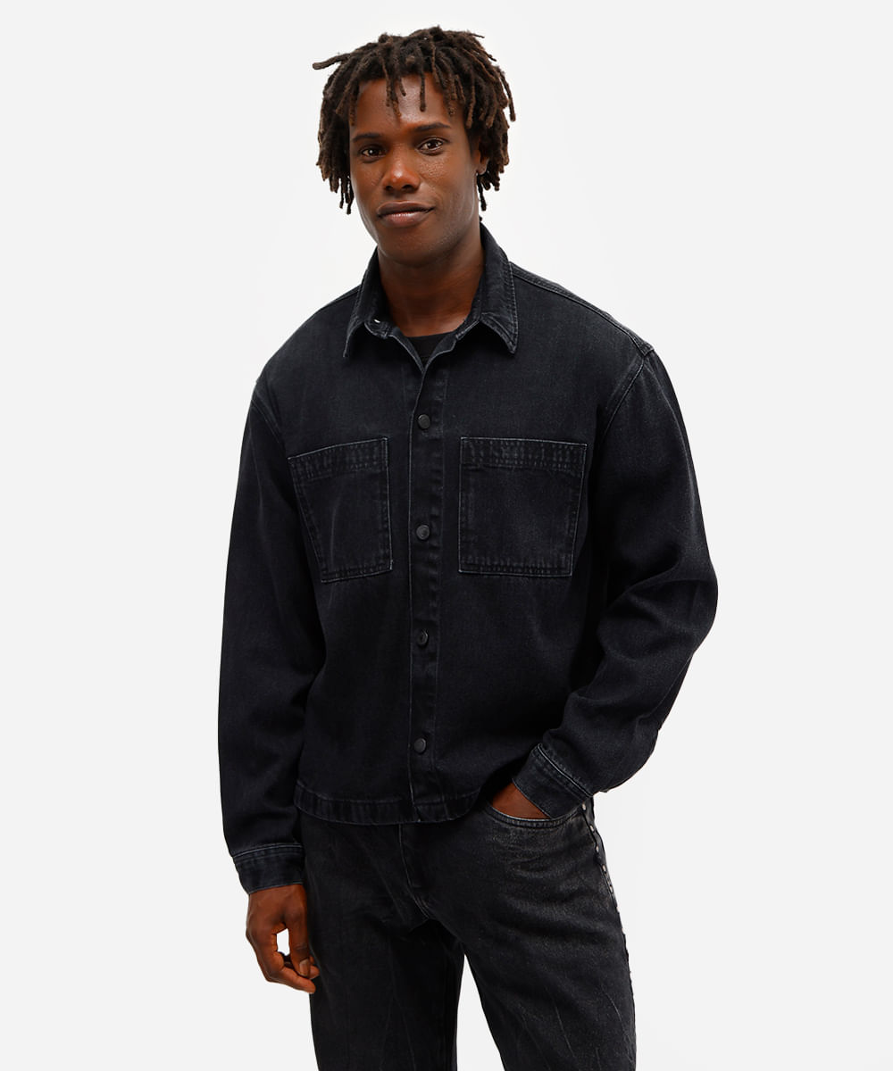 camisa overshirt masculina jeans preta