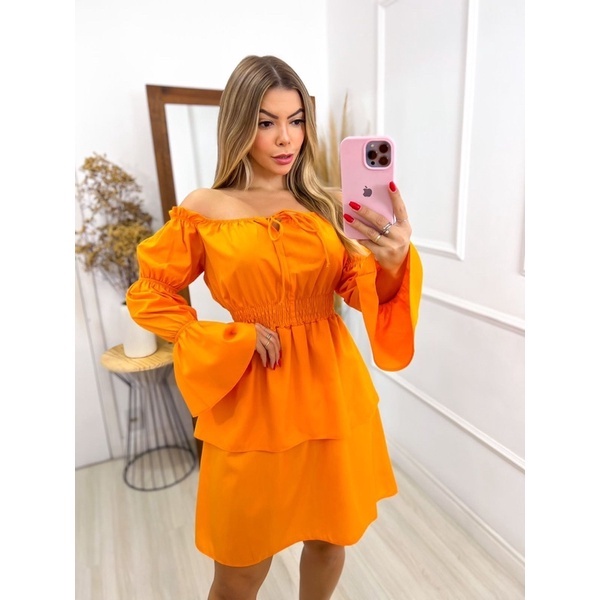 Vestido Curto Feminino Duna Pipoca Manga Curta Babado Vestidos Midi Festa Pipoquinha Ombro a Ombro Moda Evangélica Ciganinha Elástico Na Cintura