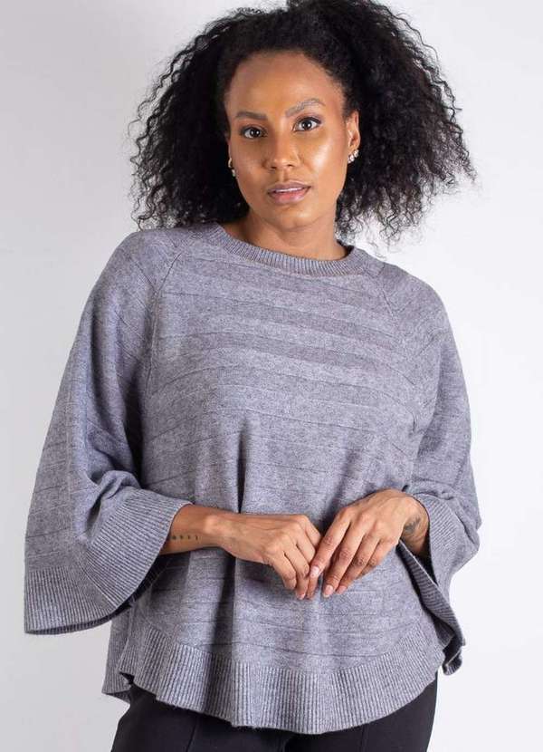 Fluffy - Blusa Ampla de Malha Feminina Manga Morcego 80986 Cinza