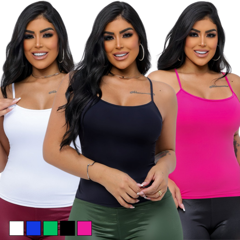Kit 2 Regata Feminina Blusa Alça Fina Com Bojo Tecido Suplex Poliamida