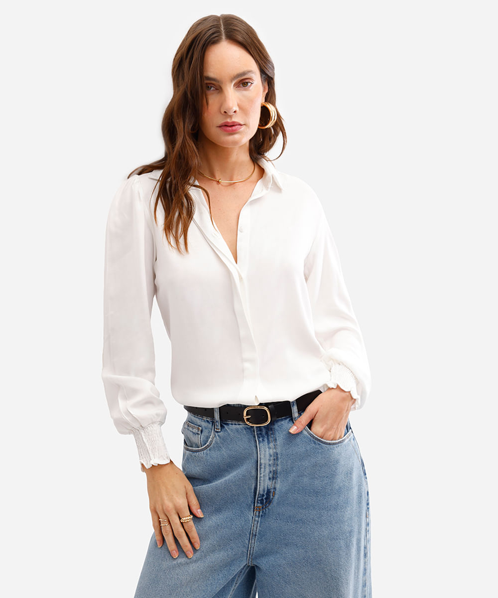 Camisa Social Feminina Listrada Manga Longa – Elegância e Conforto em Risca de Giz