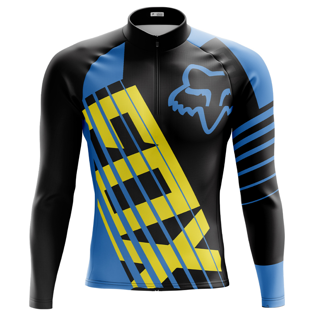 Camisa Ciclismo Masculina Manga Longa Fox Azul Com Bolsos