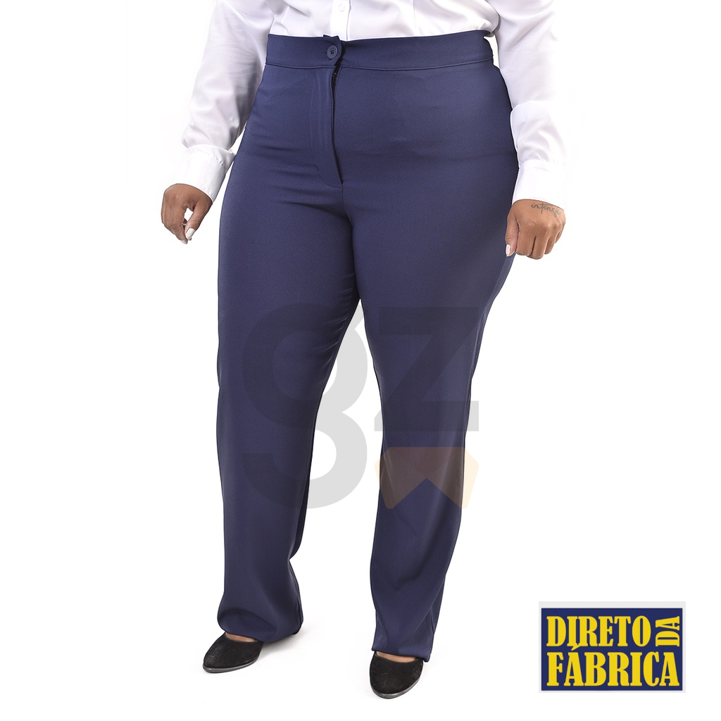 Calça Social Feminina Plus Size Cintura Média Uniforme Profissional Recepcionista Secretária De Fábrica