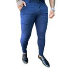 Calça Alfaiataria Skinny Acetinada Sarja Azul Marinho Homem