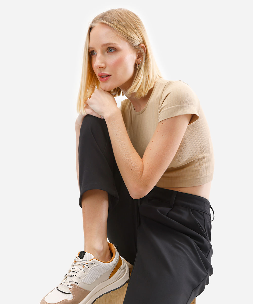 blusa cropped de viscose estampada flor de jambo manga curta decote v além dos mares salvador preta gil bege