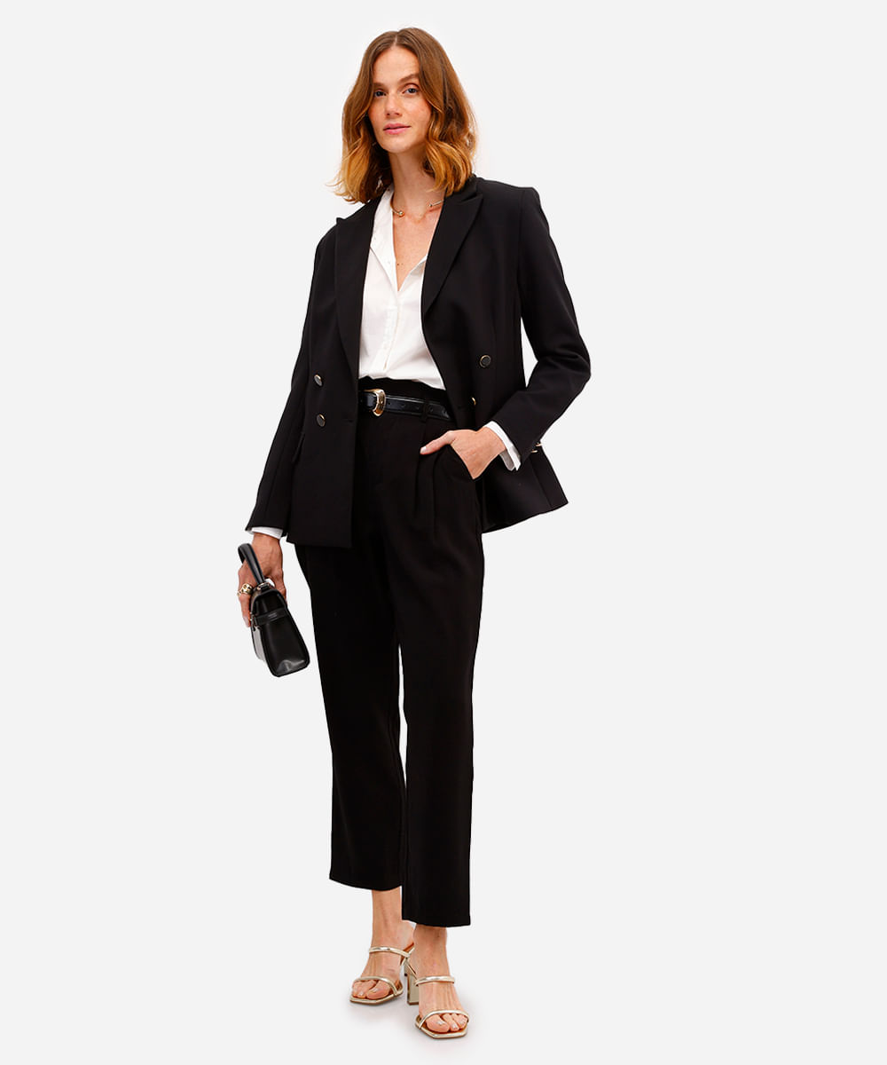 calça reta feminina de alfaiataria com brilhos mindset preta