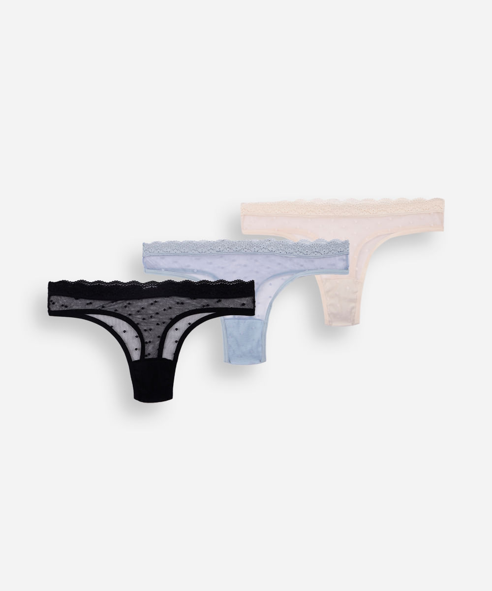 kit de 3 calcinhas fio dental de tule e renda colorido