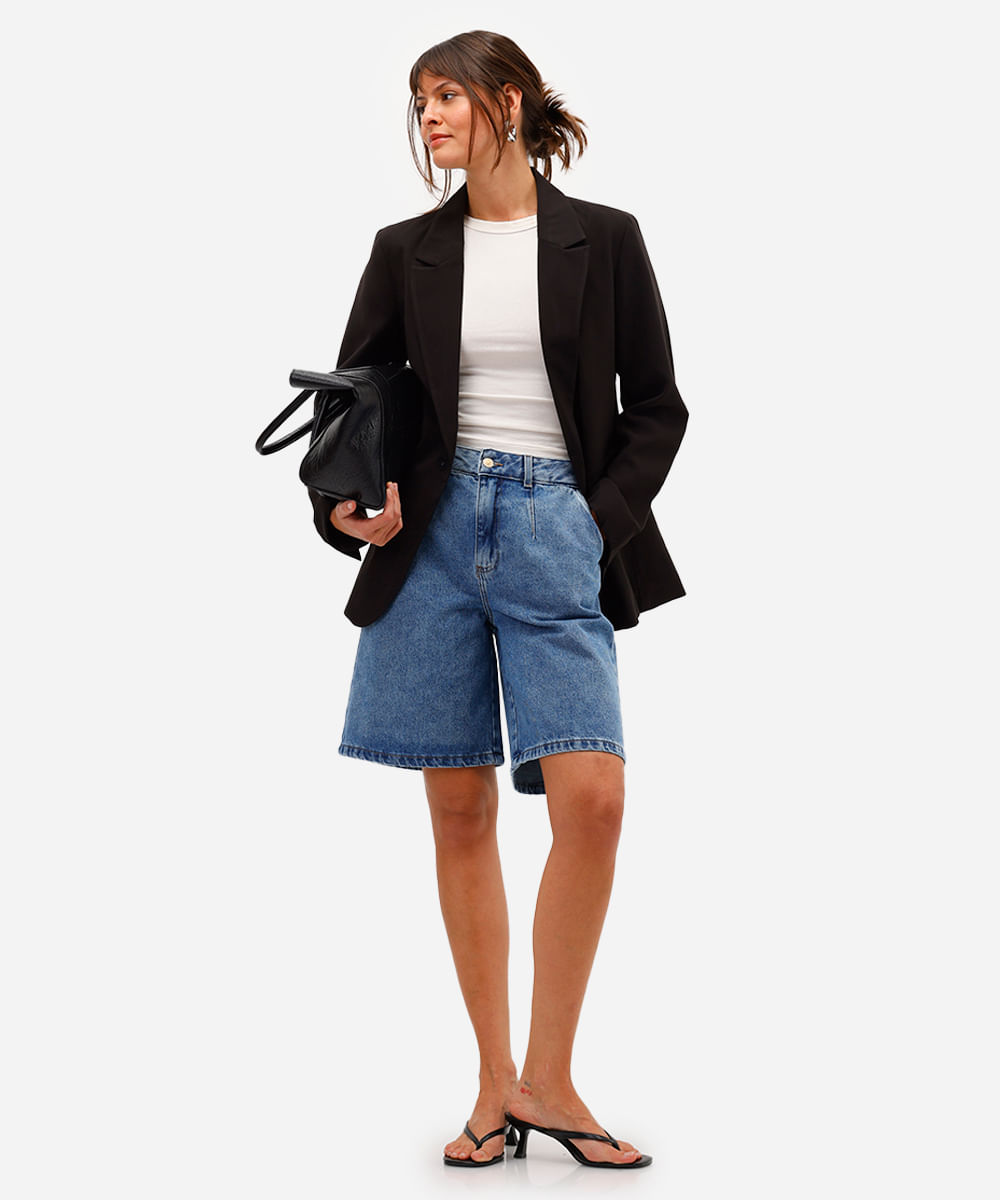 Bermuda Feminina Lez a Lez Jeans Cintura Alta Azul Escura