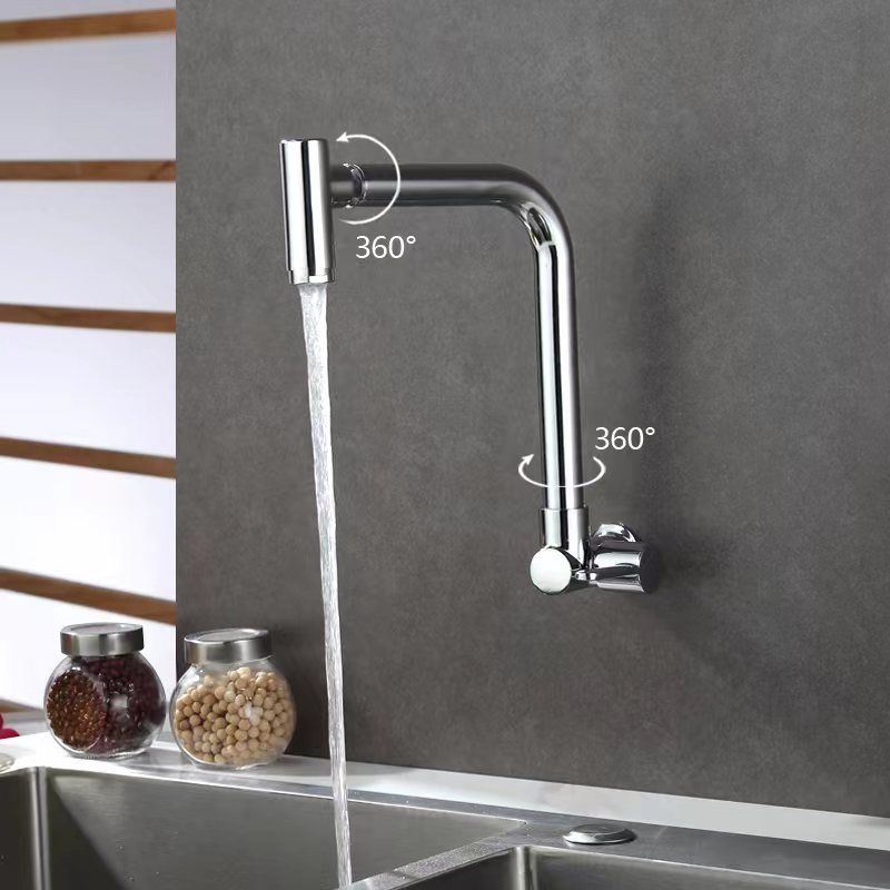 Torneira de Metal Inox de Parede 1/2" Bica Móvel 1/4 de Volta Cromada para Cozinha 5046C