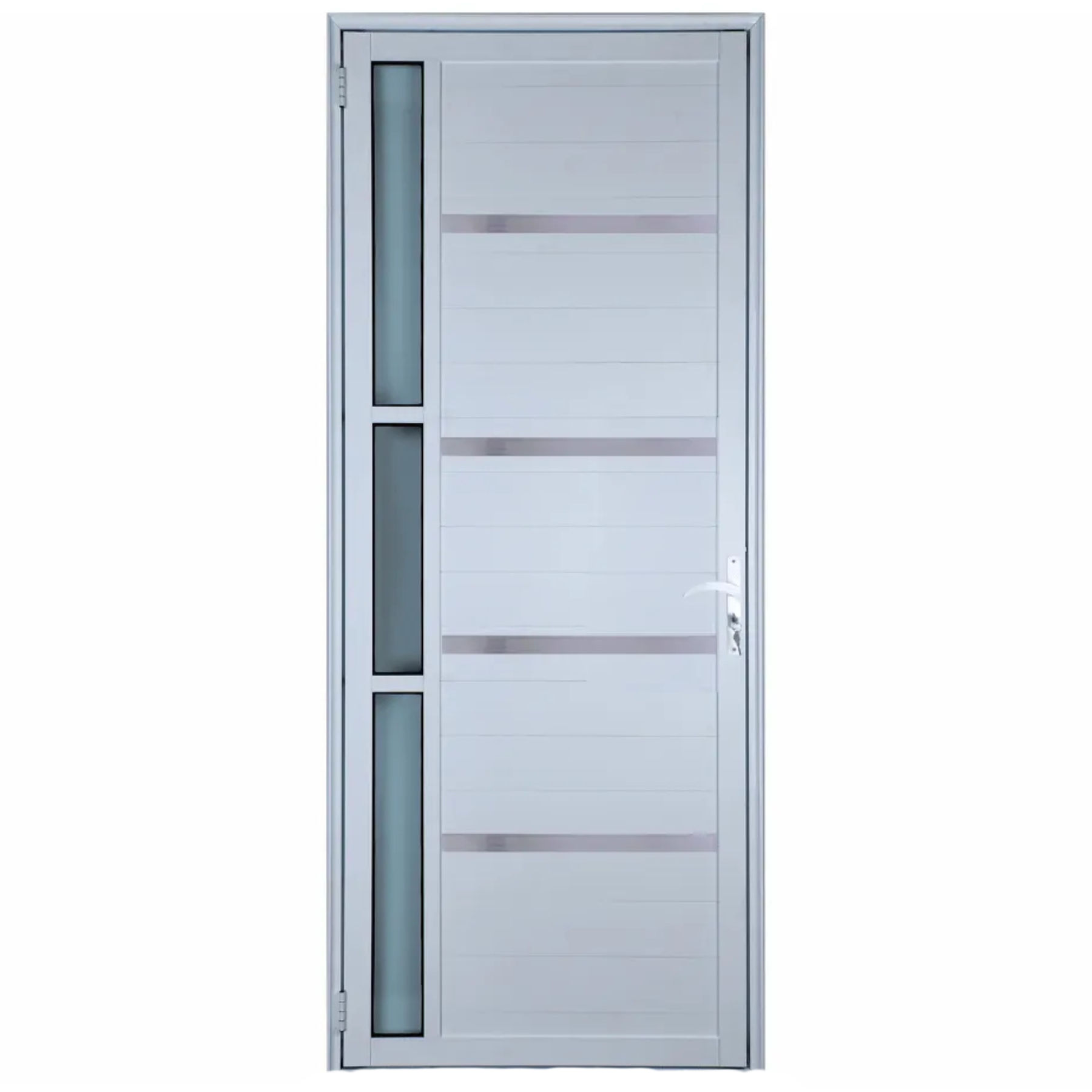 Porta de Aluminio Lambril Branco com Maçaneta, Vidro e Friso Linha 25 - 210x70 Direita