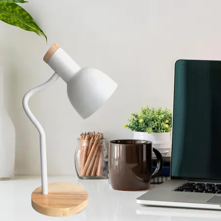 Luminária de Mesa desk LED Bivolt Base de Madeira - Branca ou Preta