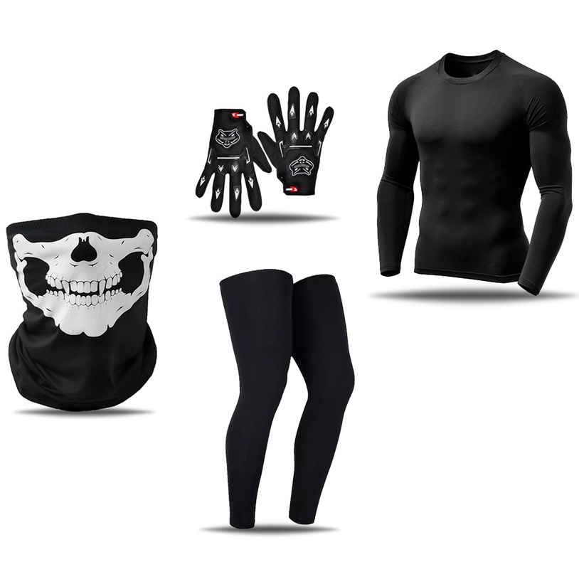 Camisa Térmica proteção solar Bandana Balaclava Caveira Pernito Ciclismo Luva