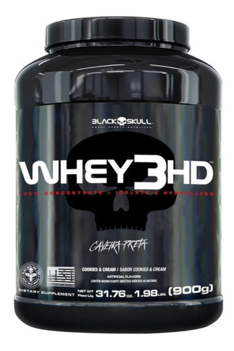 WHEY PROTEIN 3HD (WPC. WPI E WPH) CONCENTRADO. ISOLADO E HIDROLISADO - 900G - BLACK SKULL Cookies &amp Cream