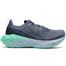 Tênis ASICS Novablast 4 - Feminino - Azul Marinho com Verde e Azul