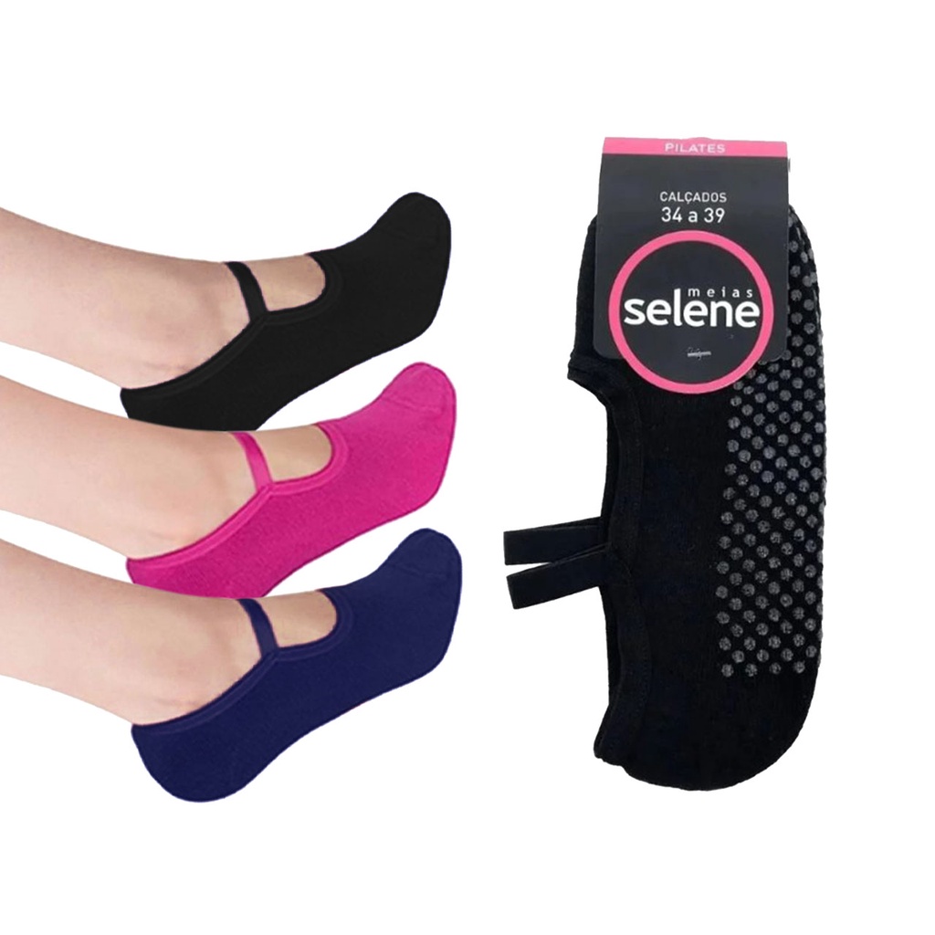 Meia para Pilates Antiderrapante SELENE Preta Pink Marinho 34 ao 39 Yoga Sapatilha Esportiva Grips Não Escorrega