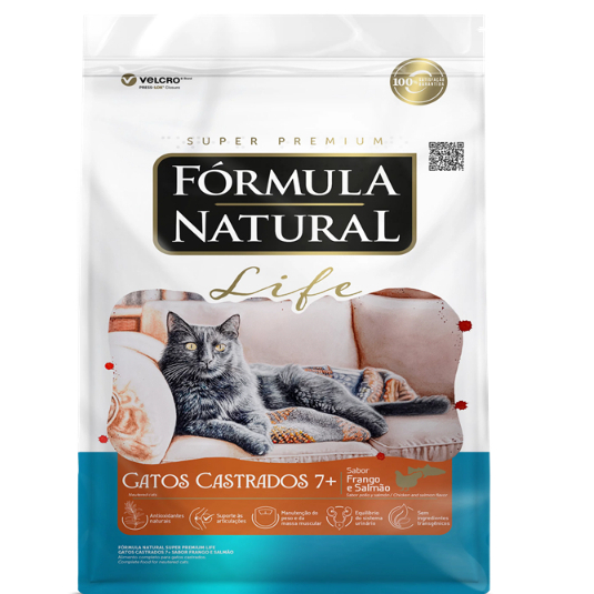 Fórmula Natural Life Gatos 7kg Castrados 7+ Frango e Salmão Ração