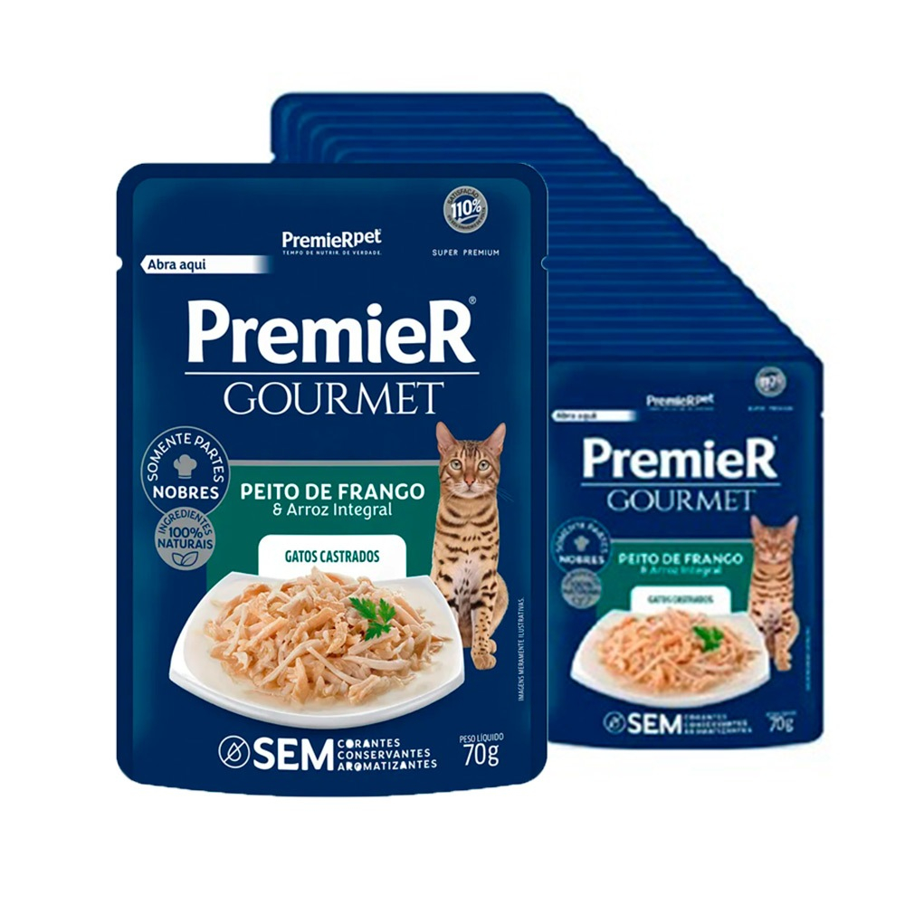 Kit 20un. Ração Úmida Premier Gourmet Gatos Castrados Peito de Frango e Arroz Integral 70g