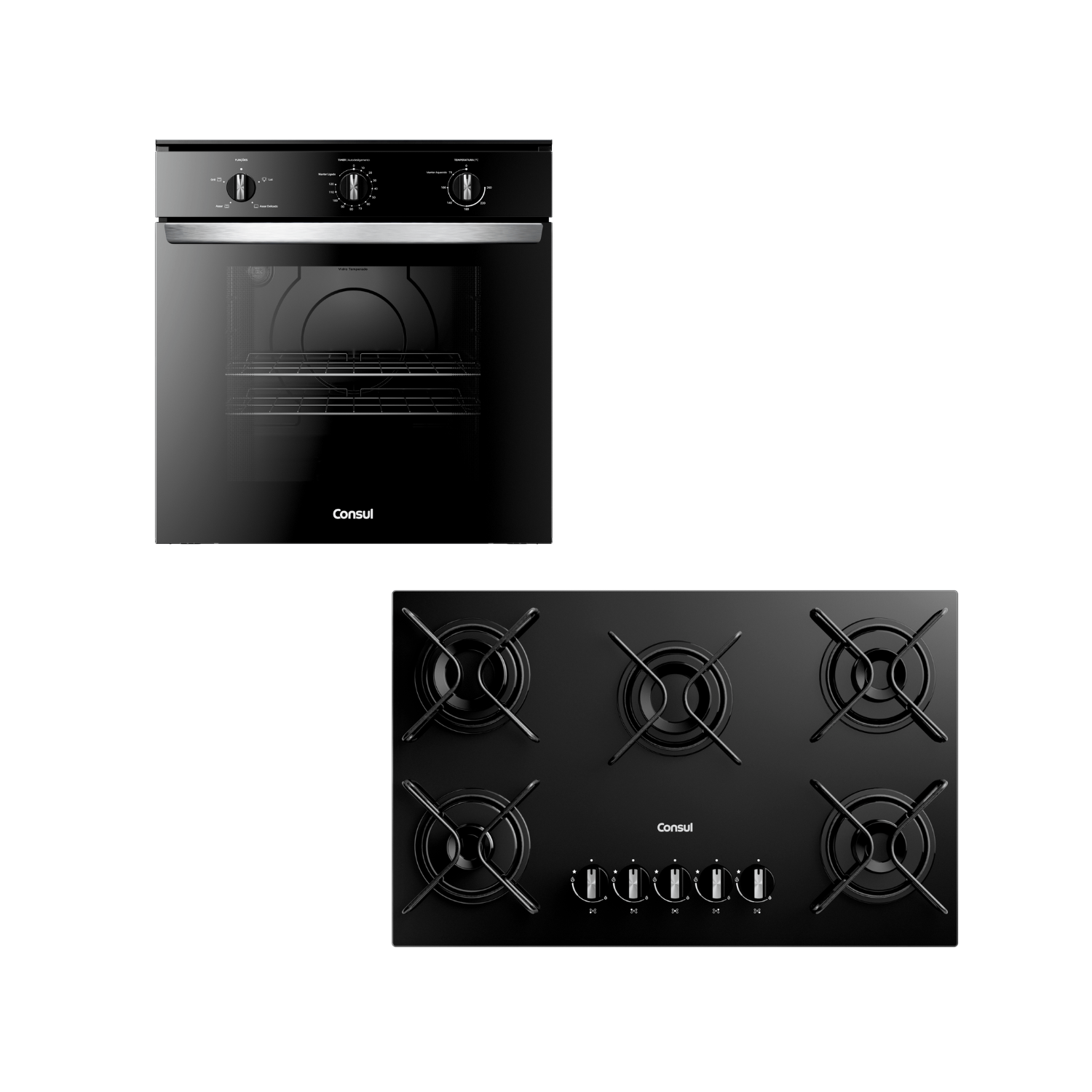 Combo Forno Embutir Elétrico e Cooktop 5 Bocas Consul (COB84BE e CD075BE) – COB84_CD075_CJ