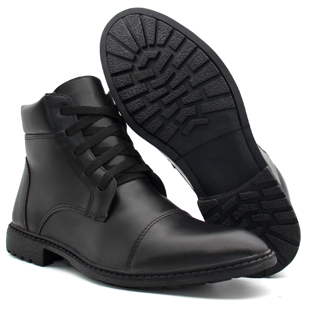 Bota Coturno Masculino Casual Dunamis Forrado em Couro Preto