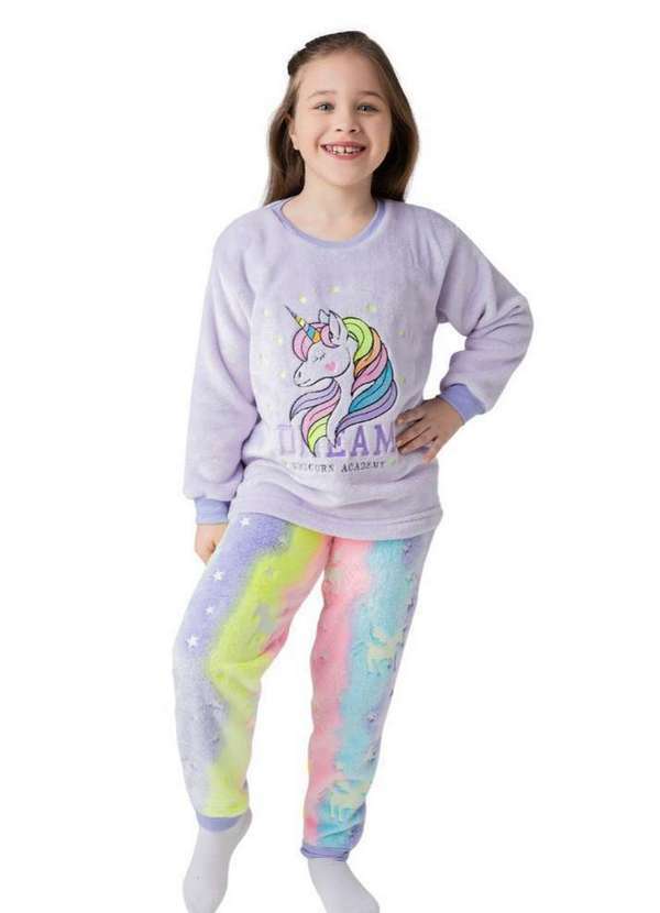 Cia da Malha - Pijama Infantil Feminino Meninas Inverno Fleece Soft Plush Longo Lilas