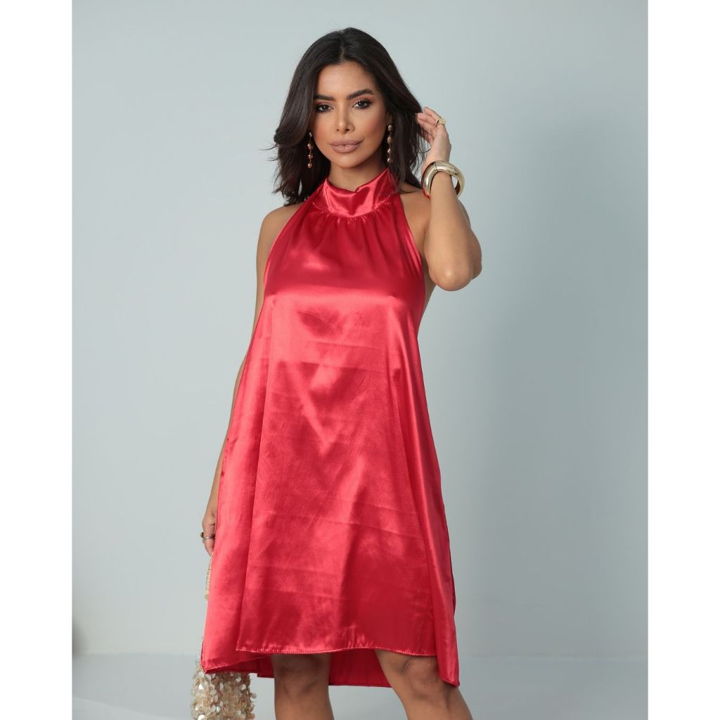 Vestido Feminino Curto Frente Única Cetim Vermelho Moderno Elegante TENDENCIA FESTA NATAL 2024/25