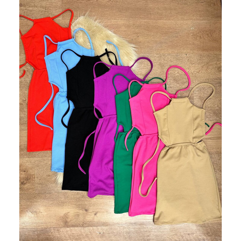 Vestido Canelado Curto Tubinho Frente única Blogueira Várias Cores Costas Nua
