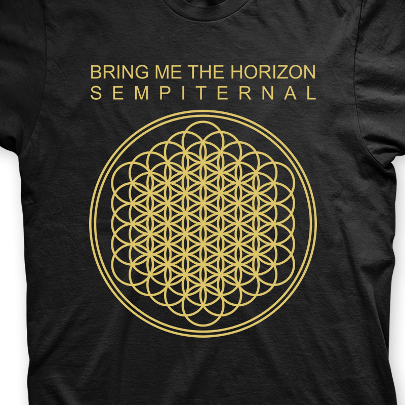 Camiseta Bring Me The Horizon Preta e Dourado em Silk 100% Algodão