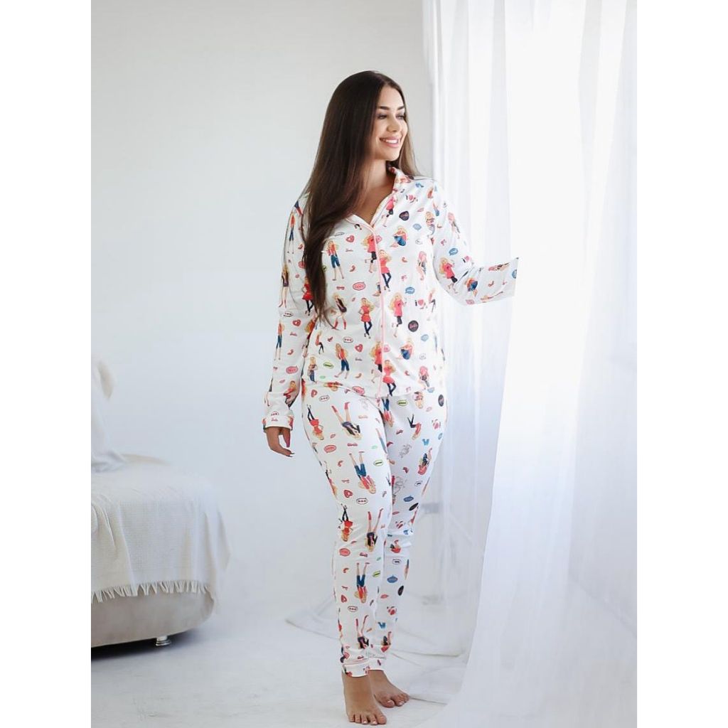 Pijama Americano Longo Feminino com Botões em Suede Premium – Branco com Estampa Colorida