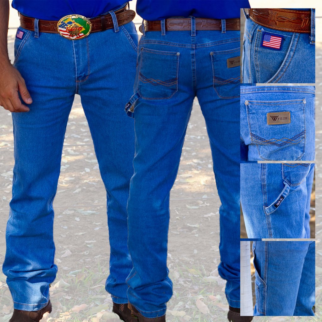 Calça Jeans Carpinteira Masculina adulta com Elastano Lavagem Super Stone W-12X