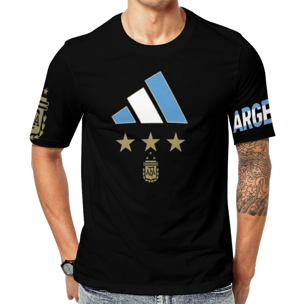 Campeão De Futebol Argentina PrintedRound Neck Qatar Camiseta De Manga Curta Preta