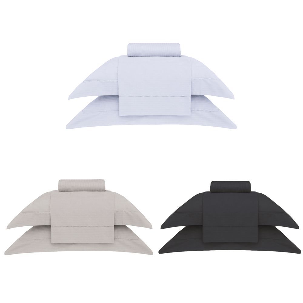 Jogo de Cama Cetim 300 Fios Buddemeyer Damask Stripes 100% Algodão Penteado Grafite 3 peças