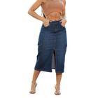 Saia Midi Jeans Com Bolso Cargo Evangélica Recorte Na Frente