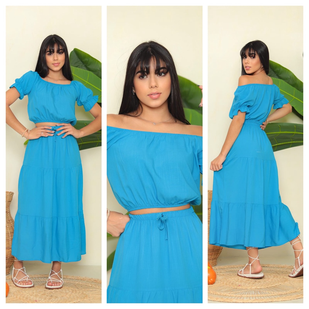 Conjunto Feminino Juvenil Saia Longa Com Cropped Viscolinho