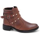 Bota Feminina Casual Zíper Lateral Em Couro Cano Curto Maria Paula Conhaque