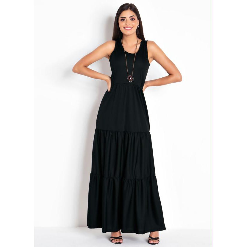 Vestido Longo Regata Com Recortes na Saia Preto Plus Size 54/56