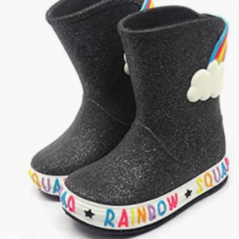 Galocha bota arco íris preto glitter Plugt nuvem fazenda água
