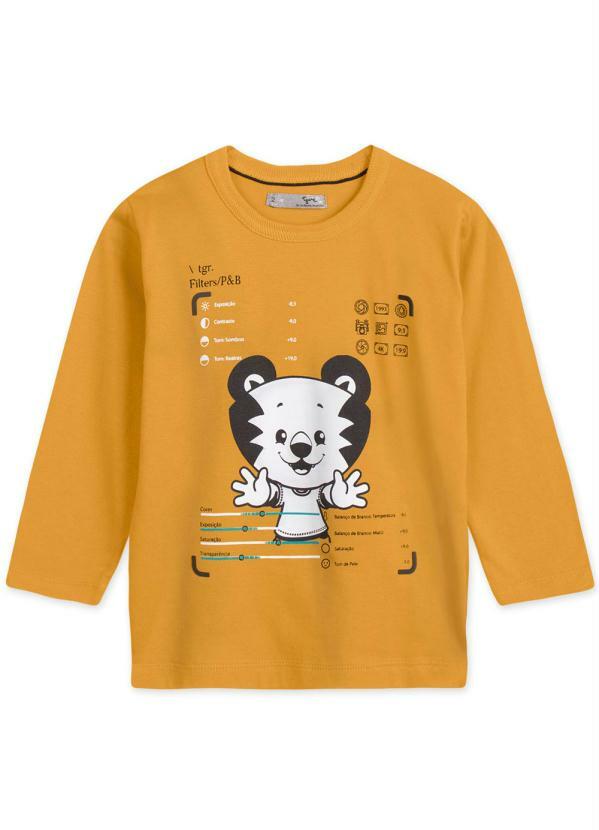 Tigor T Tigre - Camiseta Manga Longa Meia Malha Infantil Amarelo