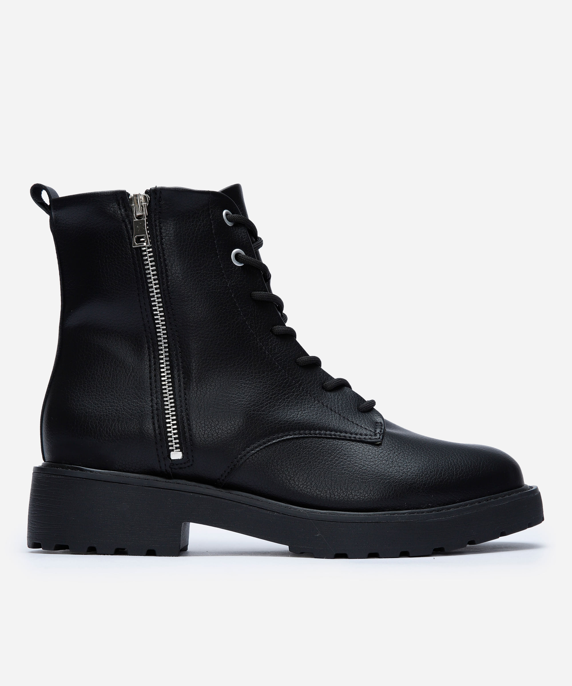 bota coturno feminina cano curto tratorada com zíper vizzano preta
